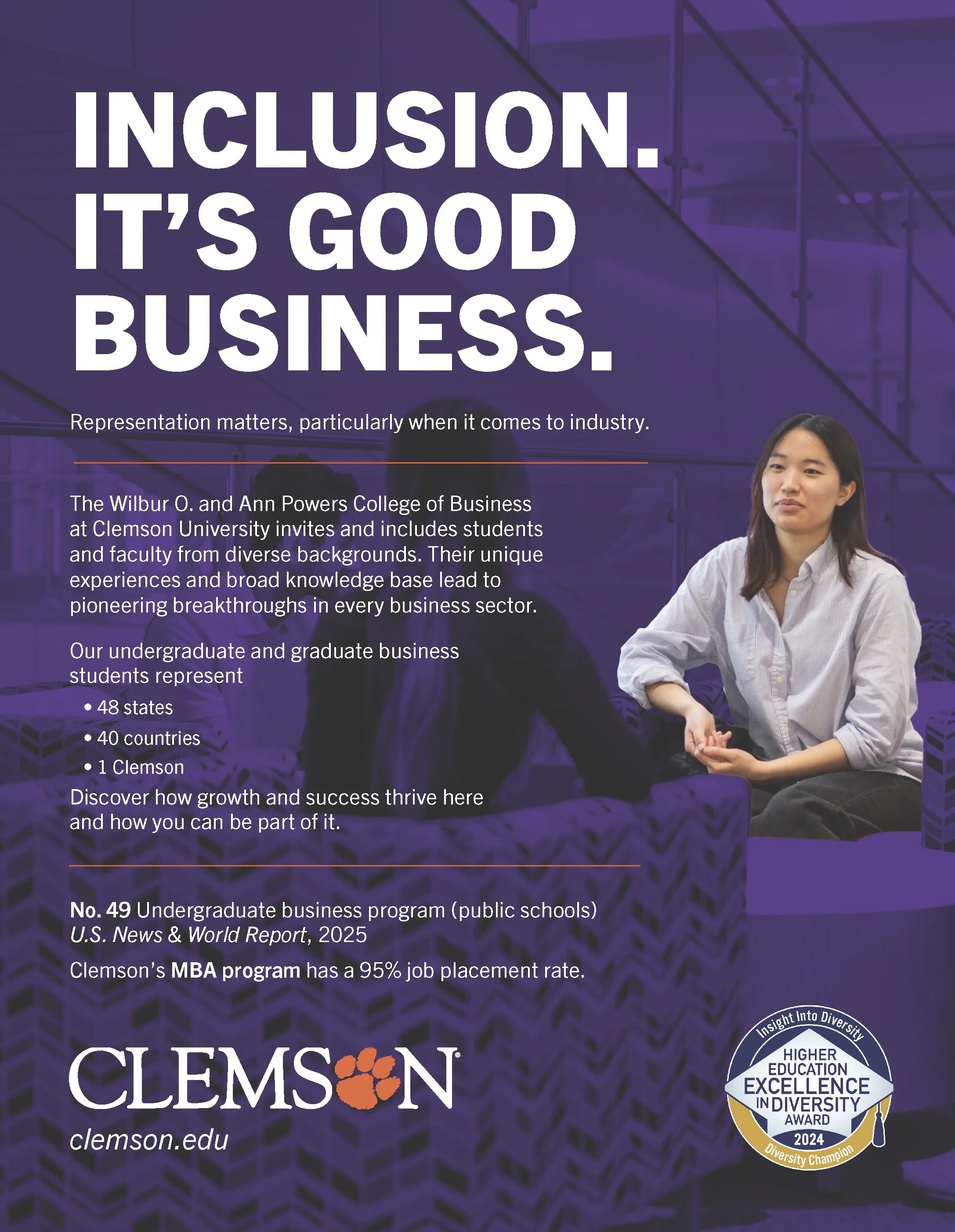 Beyond the classroom, I’ve worked hard to find opportunities that challenge me and strengthen my skills. From interning with Clemson’s Division of Marketing and Communications, the Gantt Multicultural Center, and Tigertown Graphics to managing personal freelance projects, I’ve gained hands-on experience across print, digital, and social media design. These roles have sharpened my skills in Adobe Creative Suite, branding, layout design, and content creation — while teaching me the importance of collaboration, adaptability, and designing with purpose.